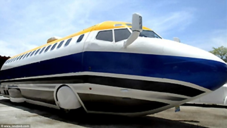 Это не автобус и не самолет, это настоящий лимузин! Правда, с чертами автобуса и самолета. Один энтузиаст авиации сконструировал это чудо, "скрестив" автобус-"мерседес" и часть корпуса от Боинга-727. Длина машины - около 16 метров, а вот ширина впечатляет! В итоге, в авто вмещаются около 50 человек, которые запросто могут устроить в машине дискотеку. Тем более, все необходимое для этого есть, включая бар, дым-машину и даже стробоскоп.