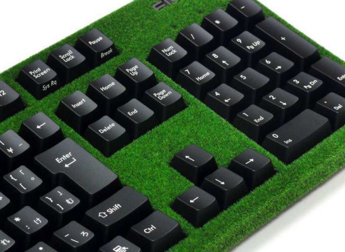 Нет, люди пока не научились выращивать ухоженный газон между клавишами клавиатуры. Но хотя бы создали видимость зеленых насаждений. Поверхность клавиатуры Midori Turf покрыта 2-миллимитровыми ворсинками, которые на ощупь напоминают коротко стриженную траву. Такого эффекта удалось добиться с помощью технологии электростатического флокирования (создания "бархатной поверхности").