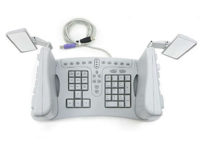 Клавиатура SafeType гордо именуется "эргономичной" — то есть, обеспечивающей максимум комфорта при работе. Но несмотря на обещания, что вертикально расположенные клавиши снимут нагрузку с запястий, популярной эта модель так и не стала. Вероятно, освоить ее удается лишь тем, кто закончил музыкальную школу по классу аккордеона.