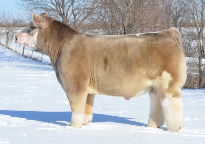 Внешний вид представителей данной породы привлекателен не только пушистым мехом. Таким животным характерно несколько разновидностей окраски шерсти. Это могут быть коричневые, черные либо красно-коричневые, рыжие, черно-белые оттенки. У пушистых красавцев отсутствуют рога, а также вымя. Животное имеет широкую шею, на которую посажена голова небольших размеров. Наблюдается спокойный переход от загривка в сторону спины, задняя часть которой слегка приподнята. Представители такой породы имеют удлиненный хвост с наличием мохнатой кисточки на кончике. Приглядываясь к телу, можно оценить его массивность. Оно представляется широким, имеет форму прямоугольника, а бока выделяются округлостью. Ноги коровы прямые, но короткие, с присутствием большого количества волосяного покрова. Поэтому ноги кажутся толстыми, словно столбы, но внешне выглядят вполне изящно. Стоит отметить внушительный вес животных данной породы - телочки весят до 550 кг, а быки - до 800 кг.