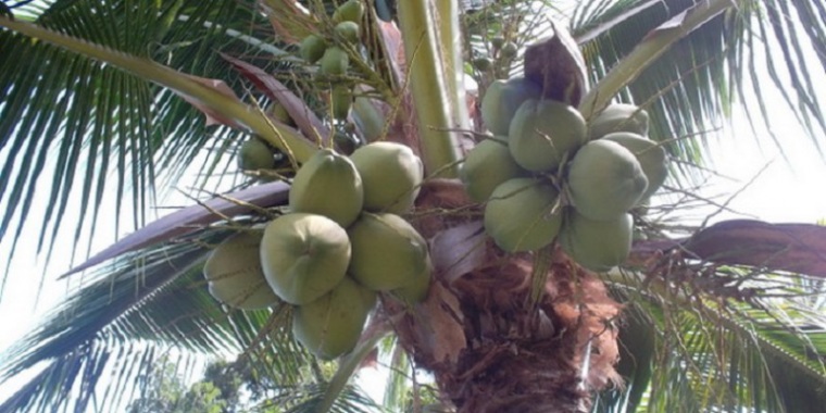 Плоды растут группами по 15—20 штук, полностью созревая в течение восьми — десяти месяцев. В культуре дерево начинает плодоносить с семи — девяти лет и продолжает около 50 лет. Одно дерево ежегодно даёт от 60 до 200 плодов. "Орехи" собирают полностью созревшими (на копру и другие продукты) или за месяц до созревания (на койр). Койр применяется в мебельной промышленности (волокна соединяются латексом — отсюда стойкий запах "резины") в таких изделиях, как матрацы.