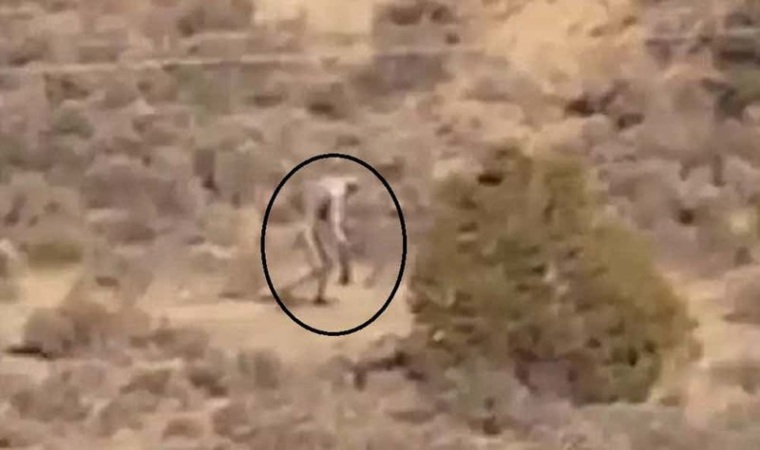 Странник огромного роста попал в камеры наблюдения, когда спокойно прогуливался по пустынной местности. Пользователи спорят, пытаясь понять, что за существо попало в кадр. Чупакабра или "версия" снежного человека - неизвестно, но существо производит впечатление человекообразного.