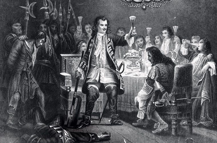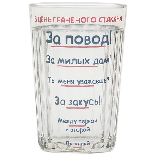 Как считают многие исследователи, граненый появился еще во времена Петра I, а изготовил его стекольный завод города Гусь-Хрустальный. Тогда стакан назывался "гранчак" и был новомодной альтернативой русским деревянным кружкам. Грани делали его прочным и не позволяли кататься по столу. Когда царю презентовали новинку, тот не поверил в надежность стекляшки и от души грохнул ее об пол. Стакан разбился. Но реформатор оценил идею и будто бы изрек: "Стакану быть". А бояре недослышали: "Стаканы бить". С тех пор якобы и пошла традиция бить посуду на счастье.
