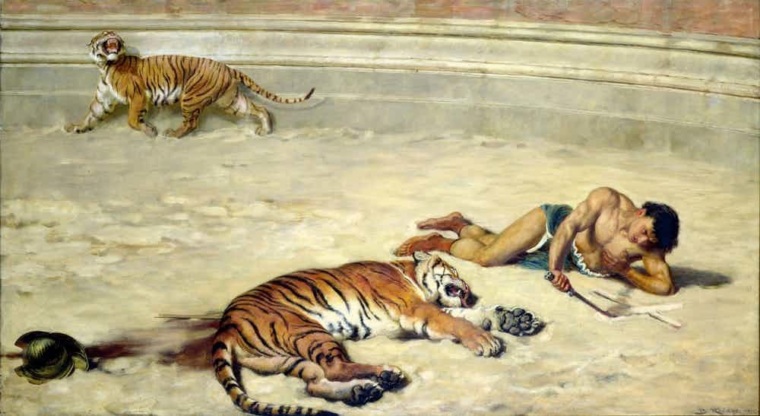 Это такое развлечение, популярное во времена Древнего Рима, когда приговоренных насильно бросали на арену для боя с хищниками - тиграми, львами, медведями. В этом случае незащищенного и невооруженного гладиатора называли бестиарием. Иногда бестиариями становились и добровольно - в поисках признания или денег, но в основном так происходили зрелищные расправы над бесправными заключенными. А вообще казнь в виде бросания хищникам существовала очень у многих народов мира.