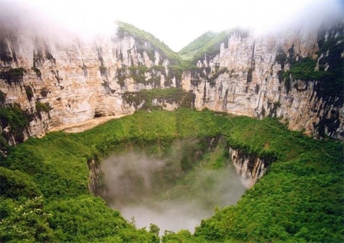 Небесная яма - карстовая воронка в Китае, расположенная в районе Чунцин. Это двойной провал, который имеет размеры 662 метра в глубину, 626 метров в длину и 537 в ширину; верхняя его "чаша" уходит вглубь на 320 метров, а нижняя - еще на 342.
