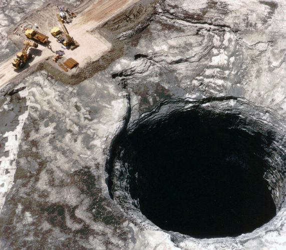 Эта дыра в Земле образовалась в июне 1995 года в штате Флорида. Химический концерн IMC-Agrico хранил на этом месте фосфорную кислоту, но однажды утром все это провалилось под землю, а на месте отходов зияла вот эта дыра диаметром 32 метра и глубиной 56 метров, способная вместить 400 железнодорожных вагонов