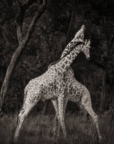 Степной жираф является самым высоким животным на Земле. Его рост его достигает 5,5-6,1 м, а вес - 900-1200 кг. Для чего жирафу такая длинная шея? Ведь в свое время жирафовые ею не обладали (их отделение от оленеподобных парнокопытных произошло в миоцене). Как полагает зоолог Роб Сименс, длинные шеи возникли для борьбы за самок - с их помощью жирафы дерутся. Чем больше у самца шея, тем чаще он побеждает своих соперников.