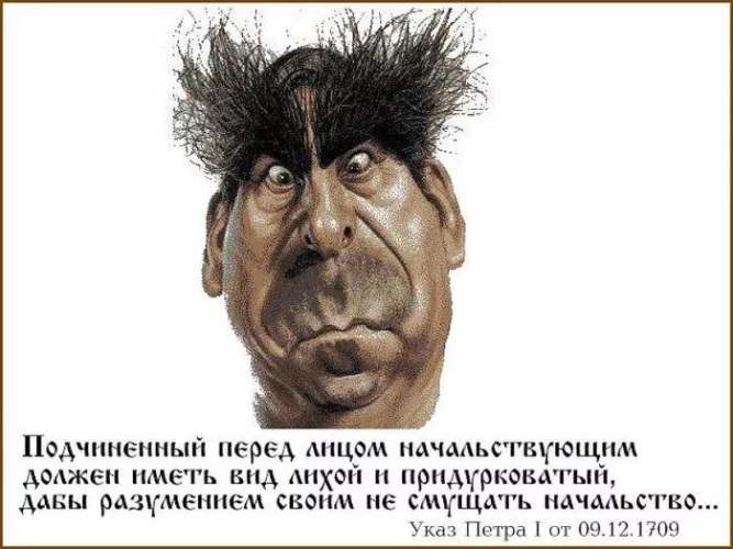 "Подчинённый перед лицом начальствующим должен иметь вид лихой и придурковатый! Дабы не смущать начальство разумением своим..."