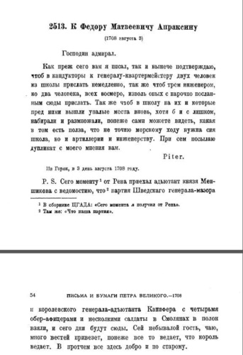 Однако все это ложь. Ни в 1708, ни в 1709 году Петр I не издавал подобный указ. А на станице 406 книги "Письма и бумаги императора Петра Великого. Т. 8 Вып. 1.: (Июнь -декабрь 1708 г.). - М.: Академия наук СССР, 1948. содержится письмо Петра I своему адмиралу Ф.М.Апраксину написанное 03.08.1708 года.