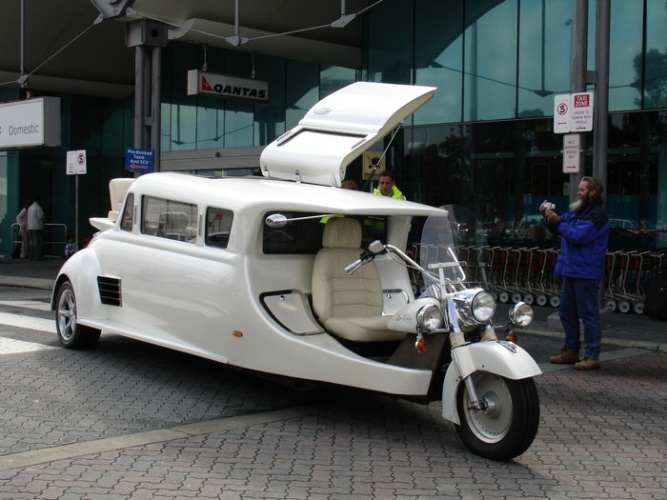 В этом авто воплотились сразу две мечты - о лимузине и о легендарном мотоцикле Harley Davidson. Хотя злопыхатели намекают, что выглядит машина, как азиатский рикша, на самом деле это роскошнее транспортное средство с кожаным салоном можно считать образцом высокого стиля.