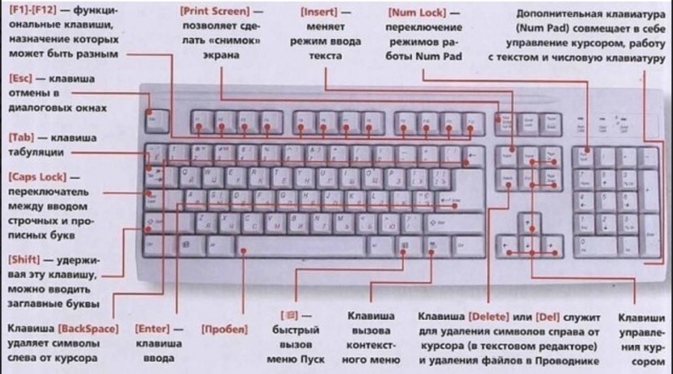 Pause/Break (читается "Пауза" или "Брейк") — приостанавливает работу компьютера. В современных операционных системах эта клавиша актуальна только во время загрузки компьютера. Стрелки вверх, вниз, вправо и влево относятся к клавишам управления курсором и позволяют перемещаться по пунктам меню, сдвигают курсор ввода в соответствующую сторону на одну позицию.