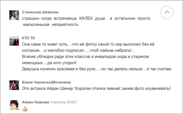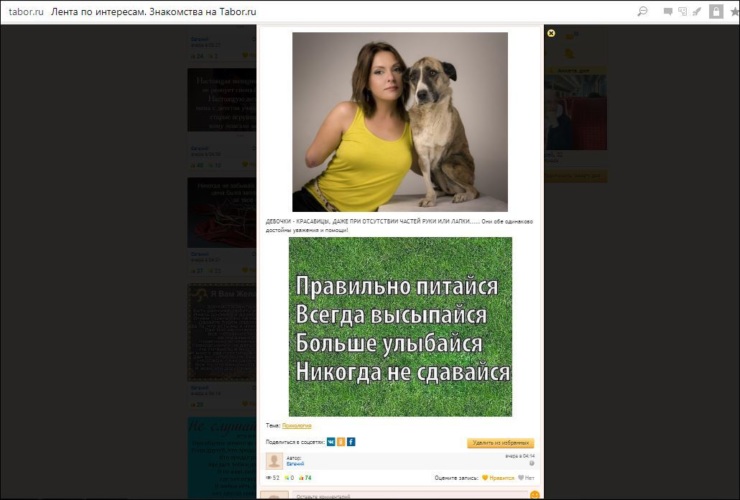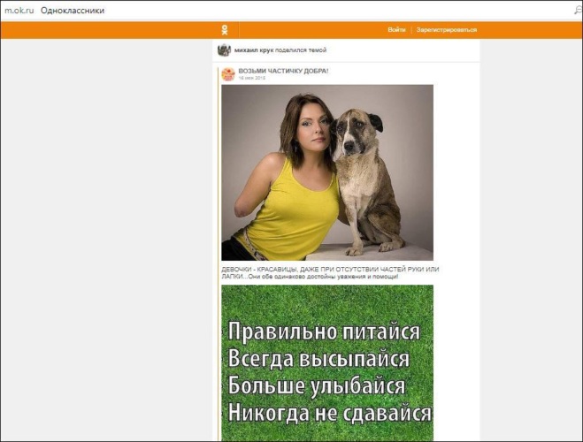 Часто вижу данную картинку тут в ленте и в Одноклассниках, везде есть жалобные подписи типа стишка выше, или: "Девушка лишившаяся руки из за несчастного случая взяла в приюте для животных покалеченную собаку.", "ДЕВОЧКИ - КРАСАВИЦЫ, ДАЖЕ ПРИ ОТСУТСТВИИ ЧАСТЕЙ РУКИ ИЛИ ЛАПКИ..... Они обе одинаково достойны уважения и помощи!" и ни где не написана правда про это фото,. Люди видят жалостливую картинку, видят что под ней куча лайков и тупо не проверив информации копируют её и выкладывают здесь. ЧТО ЭТО?! жажда лайков? или желание показать мужество девушки? а может и то и другое? Я не знаю. да и знать не хочу. Интересует другое, почему ни кто не пишет правду? Девушка на фото ведь очень известная личность, и все знают что с руками у её всё в порядке, неужели авторам подобных постов не интересно что произошла с актрисой, и как она лишилась руки?! Беда таких авторов в том что они совсем обленились, им не то что лень проверить информацию которую они выкладывают, им даже лень комменты прочитать там, от куда взята эта запись. Там уже всё проверили за них.