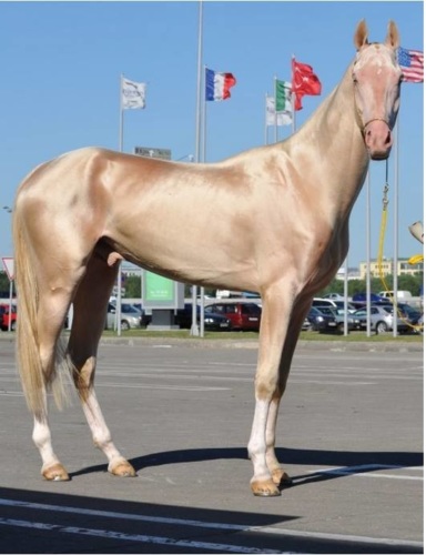 Лошадь ахалтекинской породы была выведена на территории современной Туркмении (район Ахал-Теке) примерно 5 000 лет назад. Относится к числу древнейших чистокровных пород - эталонных, повлиявших на многие другие. Самые распространенные масти - гнедая, вороная, рыжая, серая, - но встречаются и редкие - соловая, буланая, караковая, изабелловая. Характерная особенность - яркий золотистый отблеск шерсти.