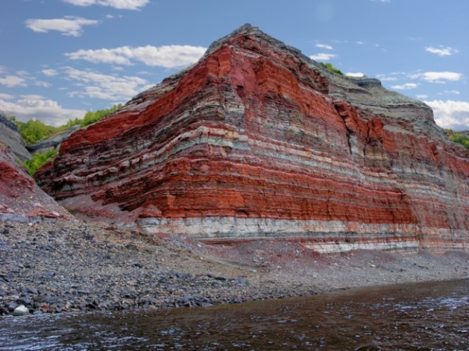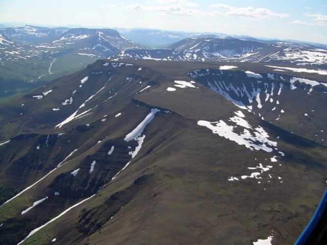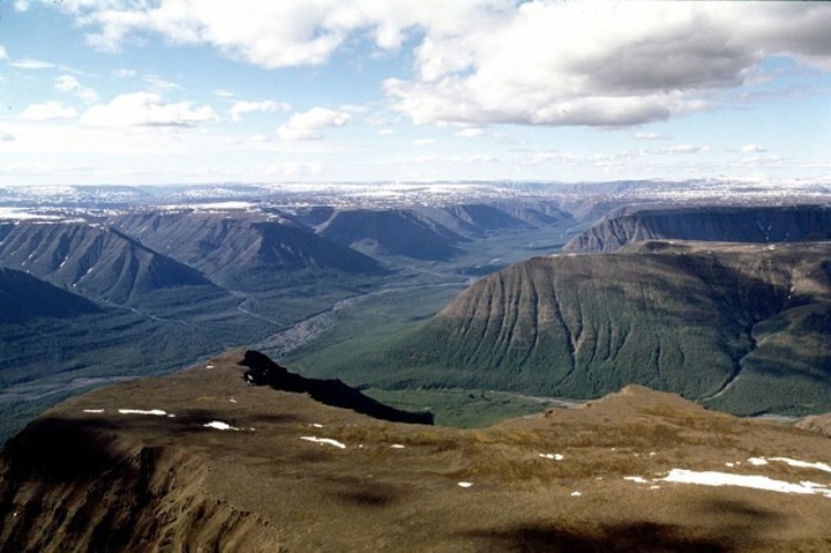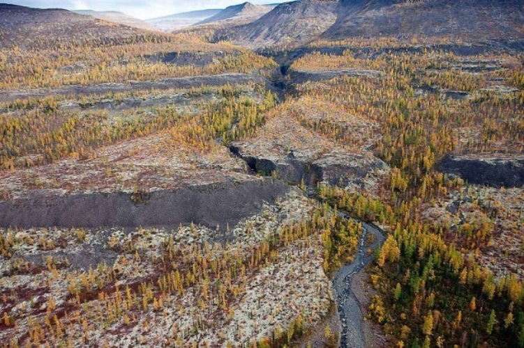 Науке - прежде всего геологии и геоморфологии - эта гористая местность дарит классический образец так называемого траппового, или ступенчатого, рельефа. Это целый комплекс высоких плосковершинных массивов, разделенных глубокими и широкими ступенчатыми каньонами. Такой рельеф возник здесь в результате поднятия древнего лавового плато, образовавшегося (еще на рубеже палеозоя и мезозоя) при излиянии огромной массы раскаленных базальтов, что привело к появлению в лавовой толще гигантских тектонических разломов. Ввиду различной прочности горизонтально залегавших базальтовых и туфовых слоев склоны образовавшихся ущелий приобрели ярко выраженный ступенчатый характер. Мощность лавового покрова в центре Путорана достигает 1500 м, и там, где склоны гор обнажены, в нем можно насчитать до 40 слоев.
