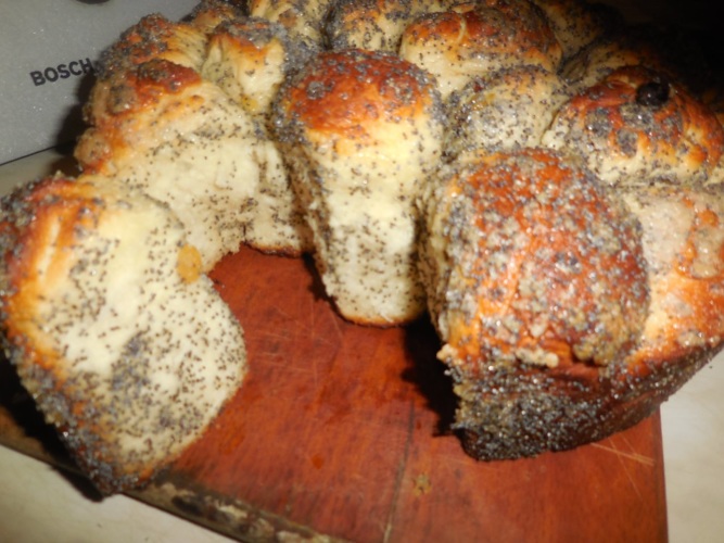 Готово! Эти вкусные маленькие булочки хороши к чаю,кофе,можно отделять поштучно, а можно и нарезать, как пирог! Мягкие внутри, с хрустящей корочкой,очень вкусно!