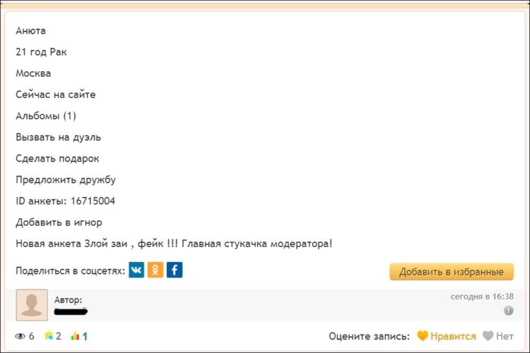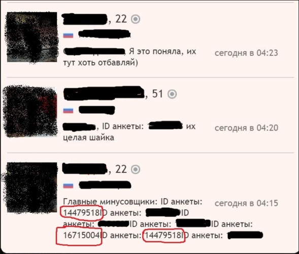 А тут ID моей подруги. Его я закрашивать не стала. т.к. она удалила свою анкету. НО это не мешает ей быть одной из главных минусовщиков.
