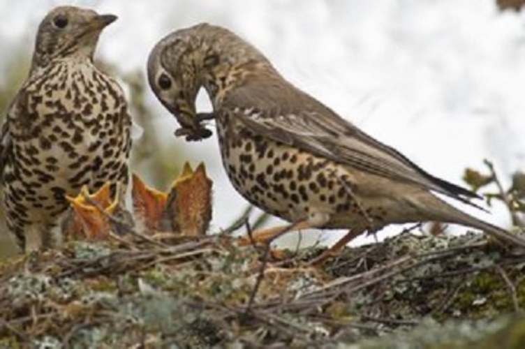 При этом птицы запоминают места, где ранее кормились у людей и могут повторно нанести визит. Их пение состоит из коротких отрывистых звуков. Тембр и тип пения - это что-то среднее между звуками, издаваемыми дроздом и певчим дроздом.