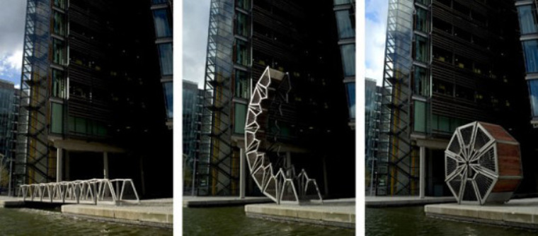 Этот уникальный мост расположен в Падингтоне (район Лондона). Каждую пятницу фигура в форме восьмиугольника разворачивается, превращаясь в мост - это и есть главная особенность. К концу дня он опять скрутится в восьмиугольник. В следующую пятницу мост появится снова. Механизм работает на гидравлике. Спроектирован мост был в 2004г., его автором является Томас Хезервик; кстати, чаши для олимпийского и паралимпийского огня - также его работа.