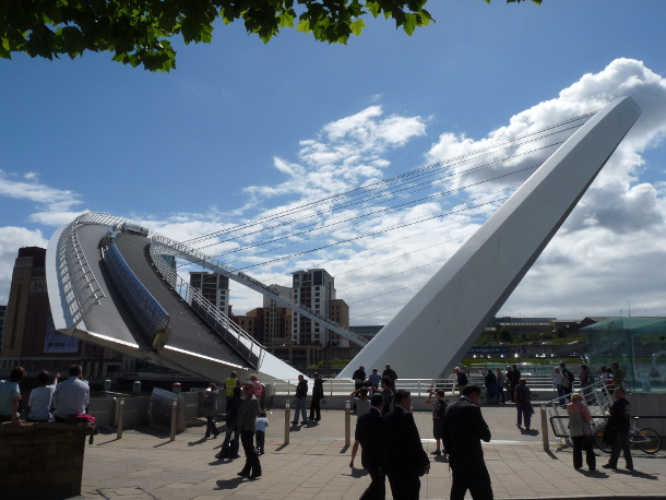 Мост был открыт Королевой в 2002 году, он расположен в центре Ньюкасла над рекой Тайн. Этот мост уникален тем, что является одним из немногих поворотных мостов. Когда он повернут в одну сторону, он представляет собой обычный пешеходный мост, по которому люди могут перейти на другой берег реки. Когда он повернут в другую сторону, под ним могут проплыть лодки и корабли. Мост завоевал много архитектурных наград за дизайн. Его еще называют "Моргающий глаз", потому что при повороте он похож на моргающее веко огромного глаза.