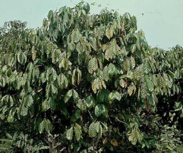 Кофе (Coffea), род вечнозеленых кустарников или мелких деревьев семейства мареновых (Rubiaceae). Насчитывает ок. 40 видов, из которых 19 имеют коммерческое значение, но только три - кофейные деревья аравийское (C. arabica), либерийское (C. liberica) и мощное (C. robusta) - дают экспортную продукцию кофейных зерен, идущих на приготовление популярного тонизирующего напитка кофе. Его название происходит от арабского слова "кахва", означающего "вино". Основная часть кофейных зерен на мировом рынке - семена различных сортов кофейного дерева аравийского. Это кустарник или дерево высотой 4,5-6 м из тропиков Азии и Африки. В культуре его обрезают до высоты 1,8-2,7 м для облегчения сбора урожая. Кора тонкая, серая; листья супротивные, темно-зеленые, глянцевые. Ароматные белые цветки, похожие на цветки жасмина, собраны группами в пазухах листьев. Плоды - эллиптические ягоды красного или фиолетово-синего цвета с тонким слоем липкой, сочной, сладкой мякоти и двумя семенами, прилежащими друг к другу своими плоскими сторонами. Они покрыты тонкой серебристой кожурой и пергаментной оболочкой: эти покровы вместе с мякотью удаляют перед обжариванием семян. Аномальные односеменные плоды, называемые "мужскими ягодами" или "горошинами", развиваются обычно у концов ветвей. Кофейные зерна различных типов различаются по содержанию кофеина, которое варьирует от 0% у разновидности humboltiana с острова Гранд-Комор до 2,9% у сорта "Extra Medellin", разводимого в Колумбии. На приготовление одной чашки напитка идет примерно полтора кофейных зерна. Базовое хромосомное число рода Coffea (n) равно 11. Известны также диплоидные (n = 22) и тетраплоидные (n = 44) виды этого рода. Путем гибридизации оказалось возможным получать различные сочетания наследственных свойств.