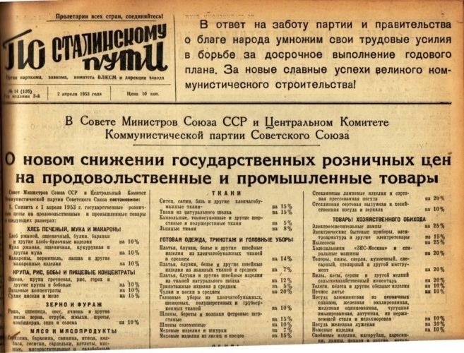 Кроме того, в связи с голодом были значительно повышены цены. В результате у государства появилось много денег. И в этих условиях оно постепенно начало отпускать вожжи, проводило незначительное понижение цен на ряд товаров, отдавало людям небольшую часть того, что несколькими годами раньше забрало у них. На реальное положение народа эти понижения цен серьезного влияния не имели. Страна жила исключительно бедно, особенно деревня. В экономике накануне смерти Сталина нарастал кризис. Даже соратники Сталина понимали, что выстроенная им система больше работать не сможет, дошла до края. И, далеко не по доброй воле, сразу же после смерти тирана начали реформы.